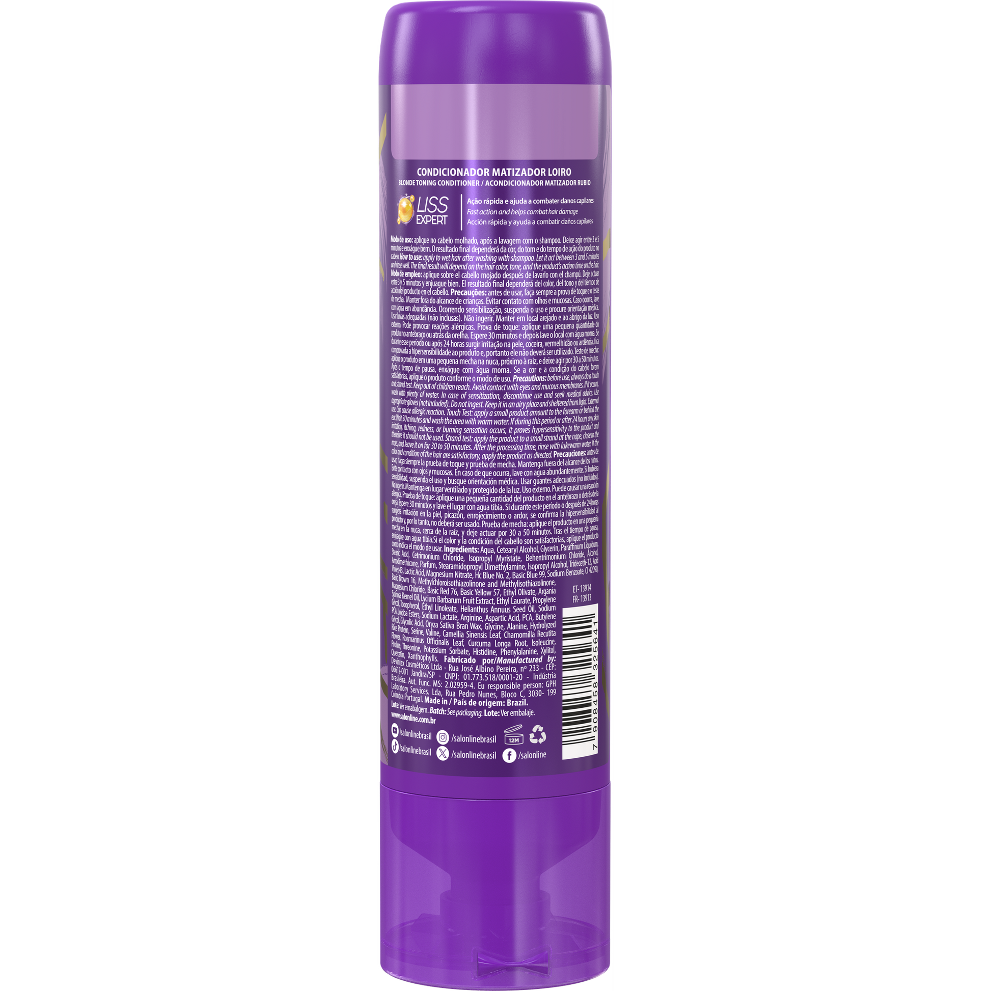 Usa il Balsamo Meu Liso Matizzante Biondo Salon Line 300ml per ravvivare il tuo biondo e mantenerlo fresco e luminoso ogni giorno.