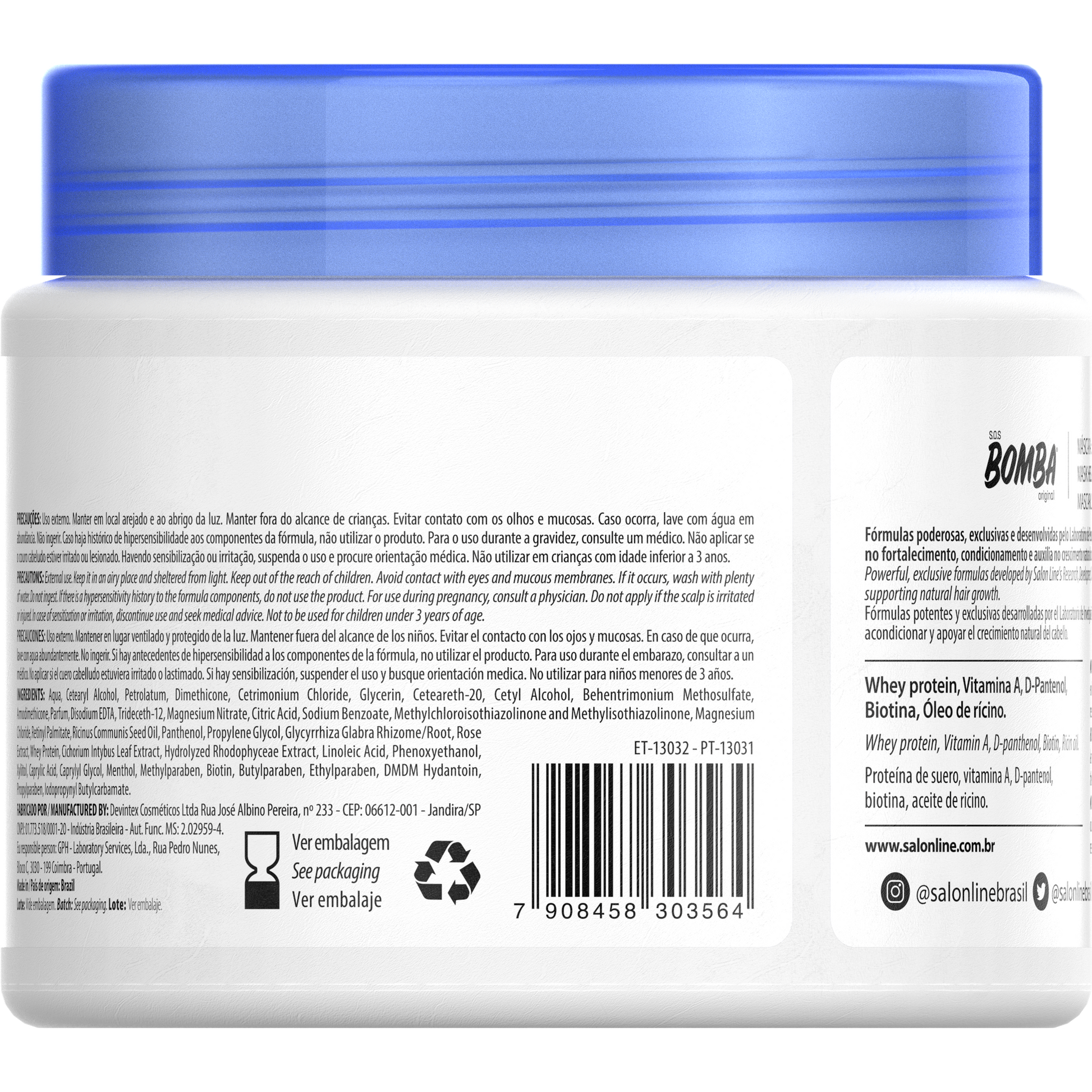 Usa la Maschera Idratante S.O.S Bomba Original 500g nella fase di trattamento per capelli visibilmente più sani, morbidi e forti.